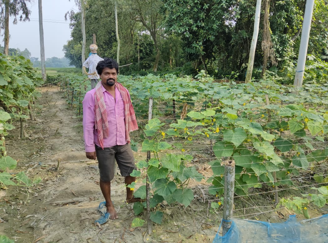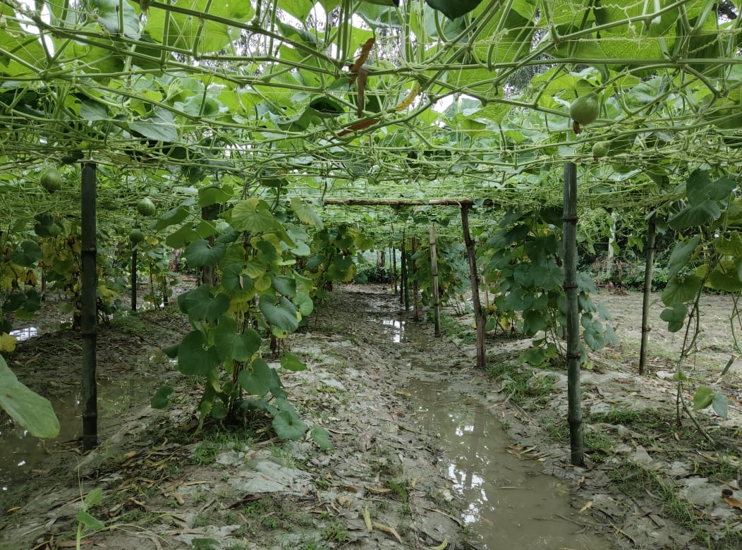 For his second attempt, he focused on growing gourd, with the U3 staff assisting in sourcing the seeds from the Beej bhander of Raiganj and facilitating seed purification using salt and water. Without the use of chemical fertilizers, Tepru meticulously cared for the plants, even creating protective seed beds. He invested Rs. 3000 in ropes, bamboo, manure, and other resources, in addition to utilizing locally available materials for bio inputs.