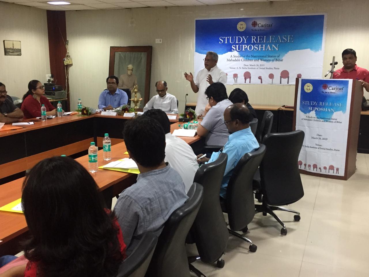 On March 26, Caritas India with Bihar Regional Forum released the ‘Study on the Nutritional Status of Mahadalit Children and Women in Bihar’, at A.N. Sinha Institute of Social Studies, Patna. The occasion witnessed a robust presence of civil society organisations, and convergence of state campaigns on right to food campaign, right to education and Dalit Adhikar Manch. The event was graced by Rev. Bishop Sebastian Kallupura, Coadjutor Archdiocese of Patna, as the guest of honour.