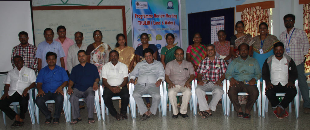 The review of THULIR (Addressing Land and Water Issues) Cluster programme covering the central Tamil Nadu was held at TASOSS, Trichy on 9th and 10th of January, 2019. The collective thinking was facilitated by Dr. John Arokiaraj, Caritas India Thematic Manager and Tamil Nadu State Officer. A total of 22 participants from 10 Diocesan Social Service Societies participated in this 2 days review programme.