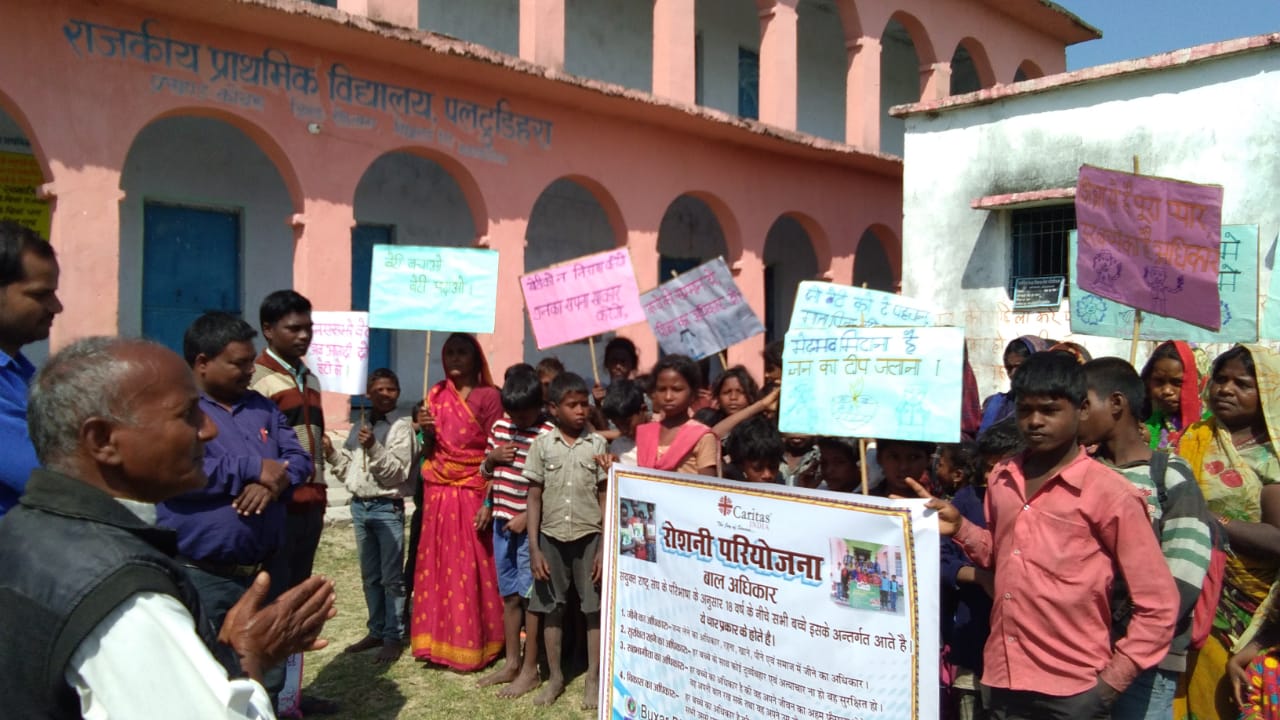 As the tiny hands wrote and raised the slogans, the elders joined in to add force to their demands for their right to education. Children of the Rishi, Saday and Manjhi communities (Mahadalit) in six panchayats in Rohtas district convened an awareness rally, supported by the Buxar Diocesan Social Service Society, on February 25-27, 2019, Bihar. As these young advocates marched past the villages and schools they called on the attention of school and local administration towards their plight and dreams to educate themselves. The gaps in securing the entitlements provisioned by the Right to Education (RTE) Act and systemic barriers that impede children’s education were voiced. These voices were supported by public school teachers, members of the Mothers’ Collectives and community at large. The children handed over their demand to the Mukhiya (Panchayat president) for a community hall, and space to run complementary education centres that aim at helping children with their syllabus, under the ROSHNI programme of Caritas India. Concerns over feeble School Management Committees and School Development Plans were shared with the school headmasters by the mothers of the children, supported by Roshni animators.