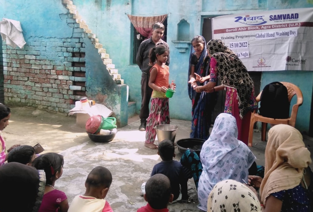 Meerut Seva Samaj, Karuna social work society-Bijnor and Suchetna – Bareilly Diocese and Agra Diocese urged children and community members to regularly wash their hands and highlighted how crucial it is to maintain hygiene and good health. All three partners observed the Global Day of Handwashing in the community to create awareness of hand washing and shared its implication for good health and cleanliness. Besides this, different groups were promoted to take initiative in spreading the message of basic hygiene by demonstrating seven steps of handwashing to eradicate various kinds of lethal disease-causing germs.
