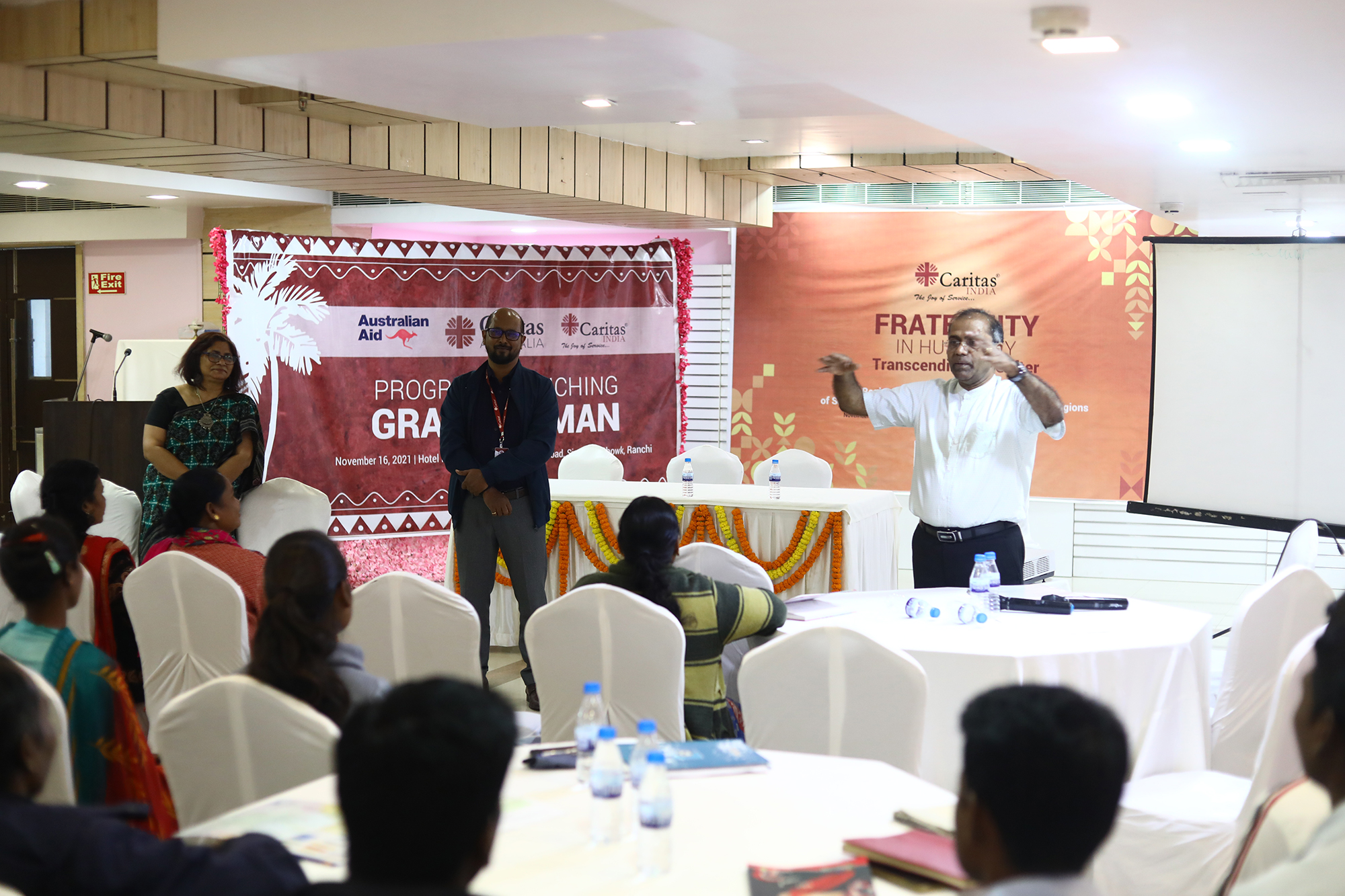 Thereafter, the program was followed by the inauguration of the Gram Nirman program by His Grace Archbishop Felix Toppo, Archbishop of Ranchi through the launching of the program brochure and T-shirt. The Gram Nirman program an Asset Based Community Development approach towards the community is initiated by Caritas India in 165 villages of Chhattisgarh and Jharkhand with the support of the Department of Foreign Affairs and Trade (DFAT) through the Australian NGO Cooperation Program (ANCP) and Caritas Australia focusing on a holistic and inclusive approach to cater multi-sectoral issues related to local governance system, participative decision-making process, access to rights and entitlements, livelihoods security, strengthening of community-based organizations and emphasis is laid on women and vulnerable households, especially widows, landless, old age, children, People living with Disabilities (PLWDs) and people infected & affected by HIV and AIDS.