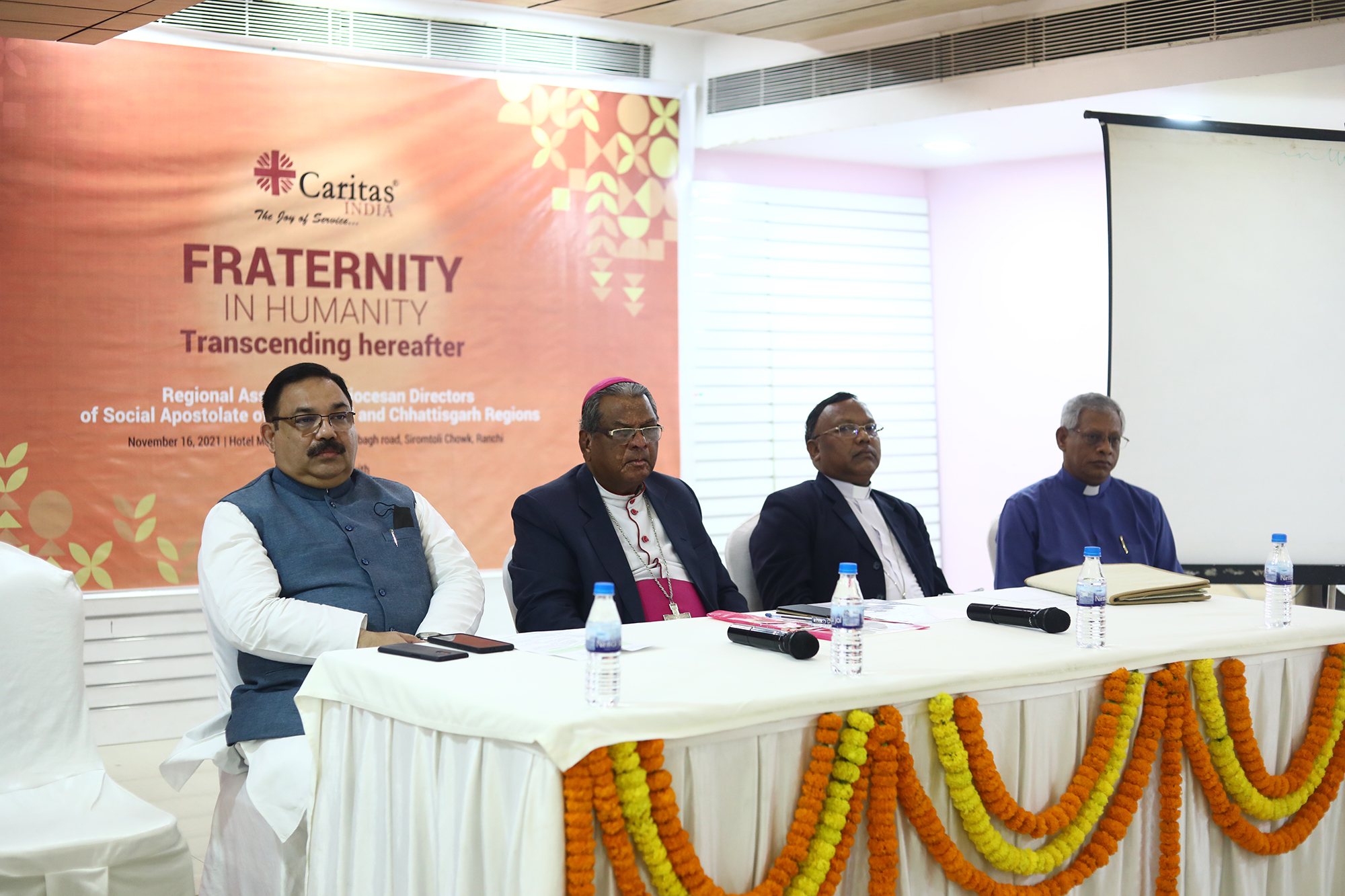 Thus, with the objective to capture the regional aspirations and priorities of the Social Apostolate of Chhattisgarh and Jharkhand and to reflect together on our continued partnership engagement in the post-Covid and post-FCRA Amendment environment, A regional assembly was organised on 16th Nov 2021 in Ranchi. The assembly commenced with Holy Eucharist presided over by His Grace Archbishop Felix Toppo, Archbishop of Ranchi and His lordship Bishop Anand Jojo, Bishop and the Chairman of Jharkhand Forum. Fr. Bipin Pain, Regional Forum Director of Jharkhand welcomed all Diocesan directors of Chhattisgarh and Jharkhand region.