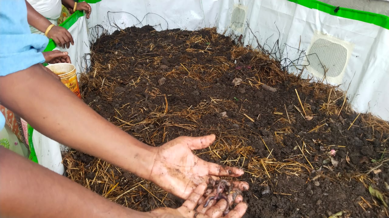 Equipped with the new skill and vermicompost kits, they designated a shaded communal area for compost manufacturing. TSSS’s suggestion to initiate a ‘Compost Bank’ aimed not only to restore soil fertility but also to provide a sustainable earning opportunity for the collective, fostering support for smallholders through collective action.