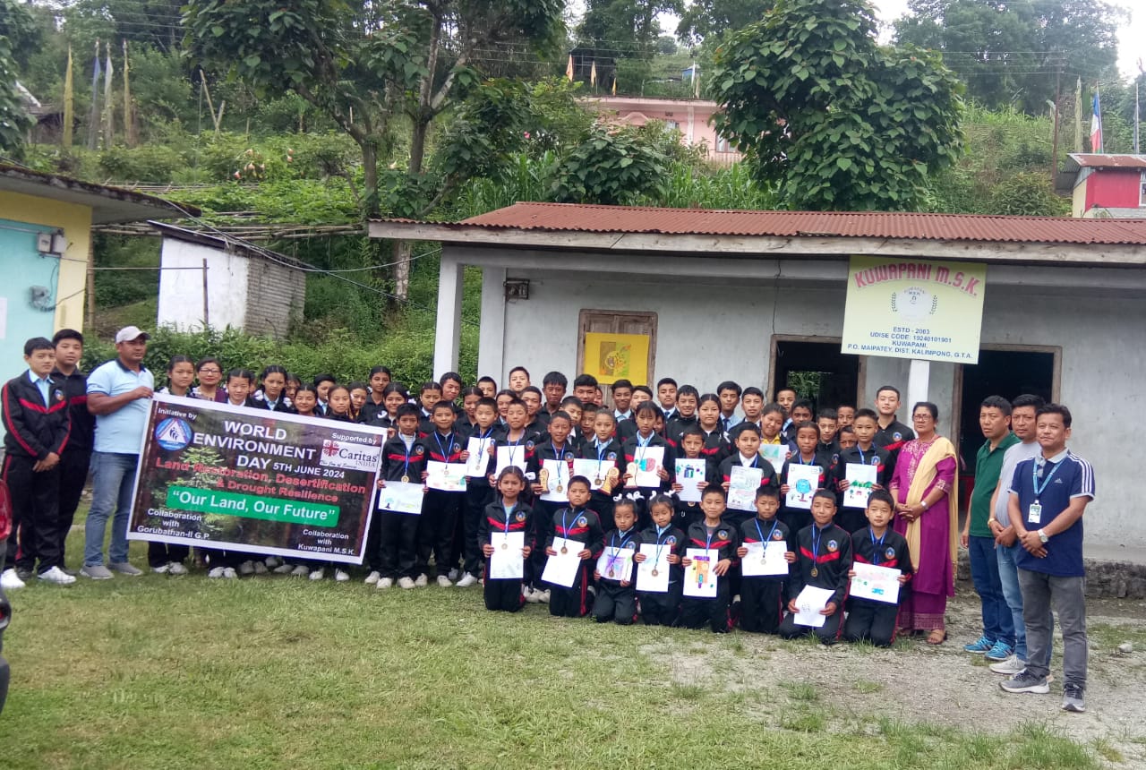 In the hills of Darjeeling, with support from Caritas India partners Anuagaylaya and local government entities such as the District Legal Service Authority (DLSA) and the Public Health Engineering Department (PHED), children led a plantation drive. Sixteen saplings were provided by Mr. Samantak Rai, Block Project Coordinator of PHED, representing the Jal Jeevan Mission Project. Children were tasked with nurturing these saplings, with the promise of rewards for their efforts in 2025. A total of 113 children participated, emphasizing their role in environmental conservation.