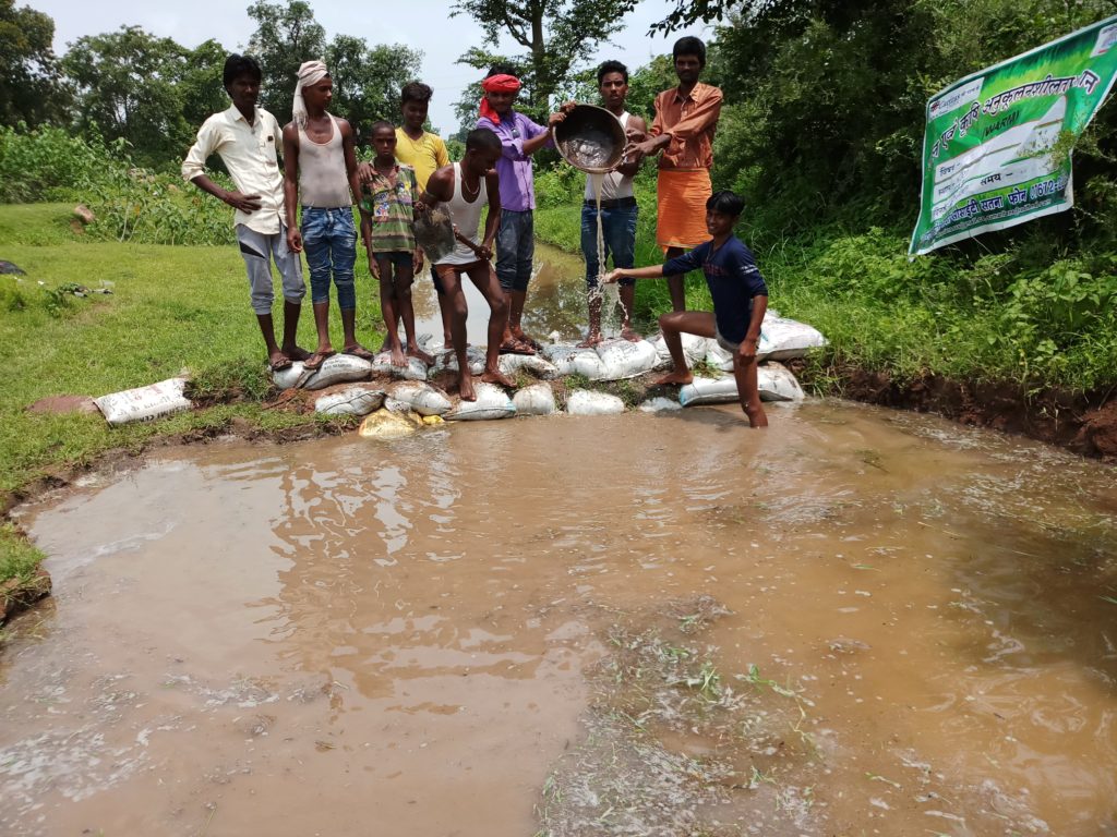 The Samaritan team suggested to stop the running off water from the streams in the village by using Bori Bandhan which helps in recharging the ground water level. Members from Farmers Club and Pani Mitr constructed Bori Bandhan with 60 to 80 sacs of sand near the stream at three different spots and they also take special interest in maintaining the same especially when there is more run off water.