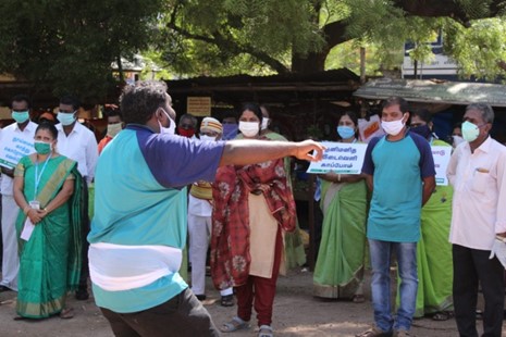As Tamil Nadu State that is under lockdown since 24th March is slowly relaxing the lockdown measures, it becomes more difficult to control the behaviour of individuals in the community. In order to make them aware of their self-protection and community wellbeing, they need to be properly oriented. To this end, District Administration has requested the support of TSSS. On the 14th of May, awareness programme on COVID 19 by 15 members volunteer team of TSSS was conducted at Palayamkottai Market Place. Non Formal Techniques like Folk Dance, Thappu, Street Play, Awareness songs, and slogans were used during this event that was inaugurated by District Collector. It is planned to continue this awareness programme every day in public places where there is a large community gathering.