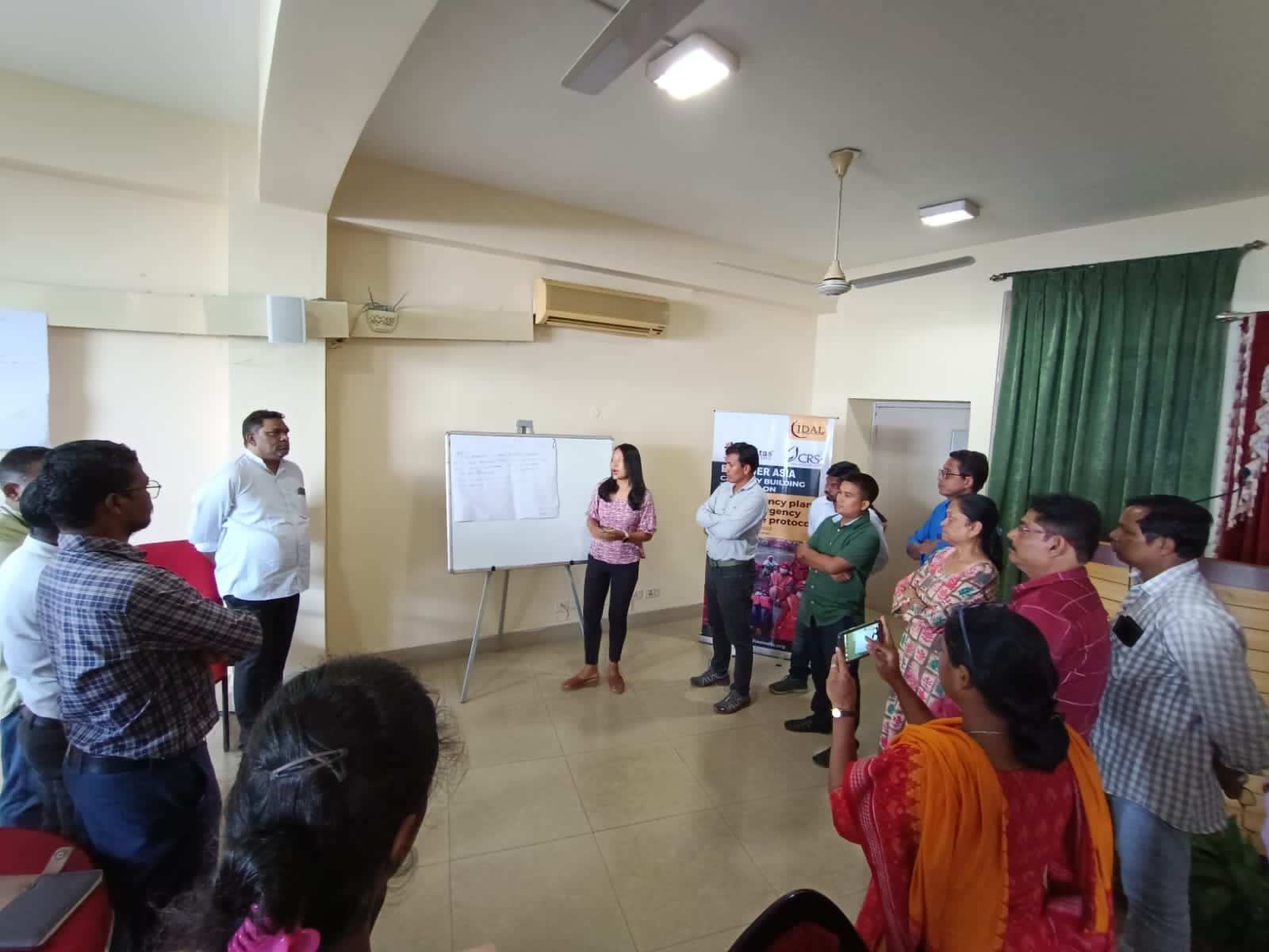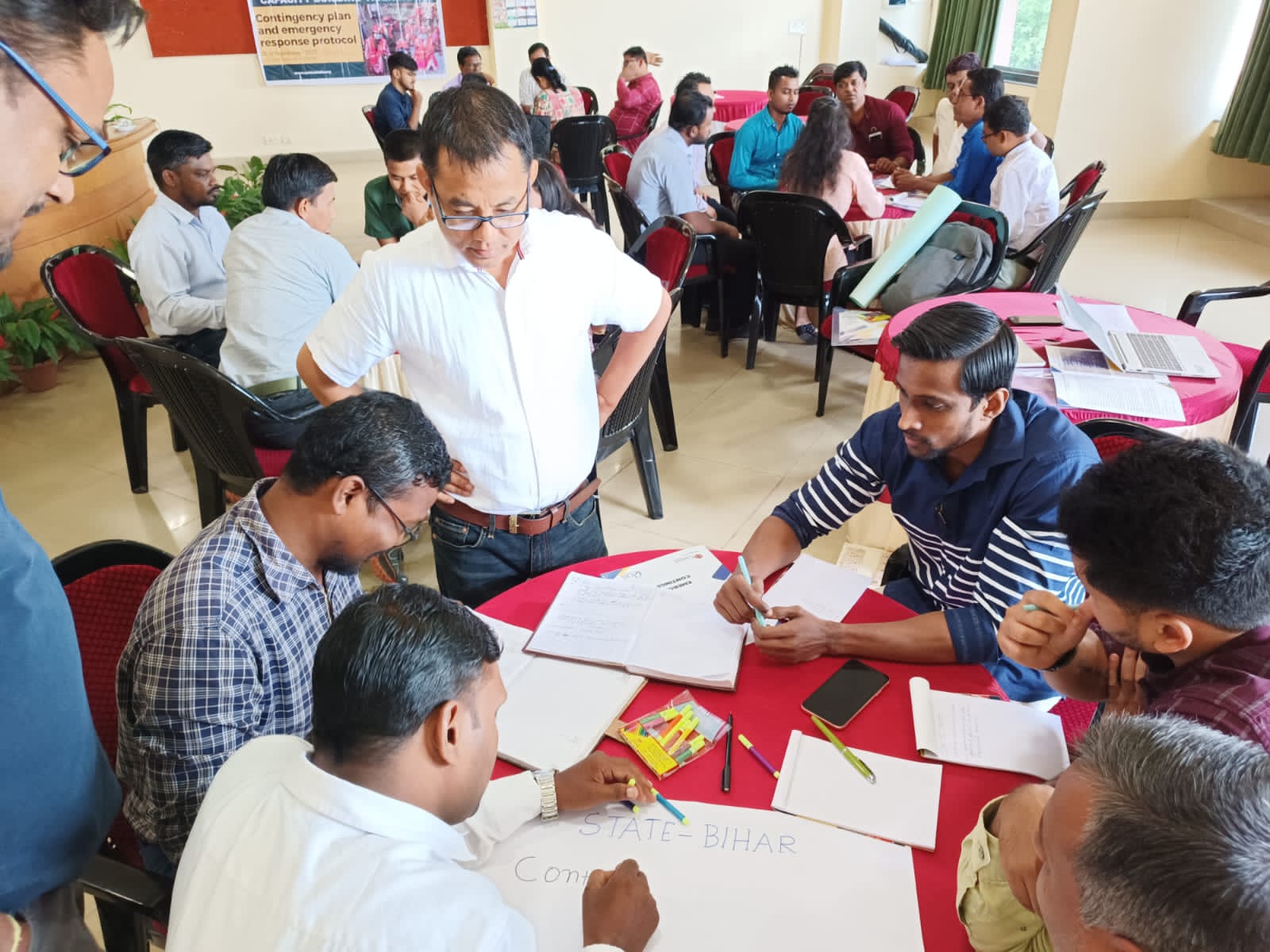 In the dynamic of the Organization session, participants have divided into two groups. The first group comprising West Bengal and Odisha, and the second group having Bihar and Assam were given 1 hour to discuss and execute their work. The resource person asked the teams to “Design an Organogram for Emergency Response”. Each group presented their organogram uniquely and creatively with a specific name assigned