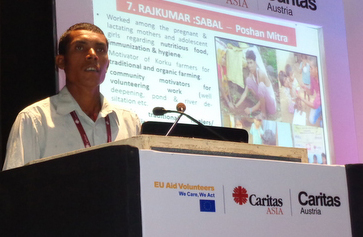 Rajkumar Patil has been appreciated for his contributions to volunteer for Sabal as a Nutrition Friend during Caritas India’s All India Conference on Volunteering for Change. Rajkumar Patil is now an active member of Sabal programme. Inspired by the concept of Sabal and motivated to work for his own community, the 21-year-old from Gram Mohanyadhana joined Sabal and took the challenge to transform his community situation which is majorly infamous for malnutrition prevalence.