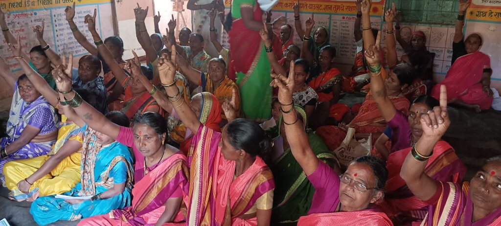 At the demand of women, special Gram Sabhas were organised in all four sub-villages of Nizare Panchayat from 15 to 23 August 2022 and the proposal to ban discriminatory widow practices was approved in all these special Gram Sabhas. “After we learned the process of convening special Gram Sabha, we decided to unite ourselves in the fight for justice to widows”, said Shakuntala Narayan Dete one of the leaders of the women’s federation of Kus Budruk panchayat.