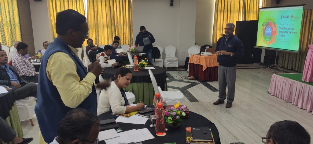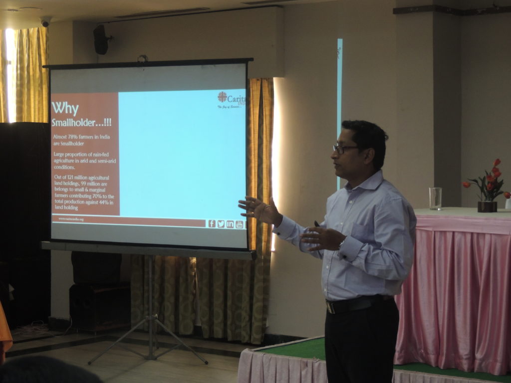 A more demand-driven agenda with long term challenges, “Your Experience Matters” Dr. Pallab De invite all CSO representatives to actively participate by sharing their learnings and experiences. Many innovative Small farm models were shared by CSO representatives followed by the smallholder led integrated farming system model of Caritas India shared by Mr. Pradipta Chand. Representatives were then invited to split into two groups to work on the need and scope of sustainable agriculture in the context of climate change and the marketing of small farm produces.