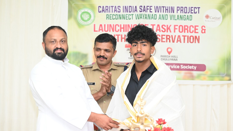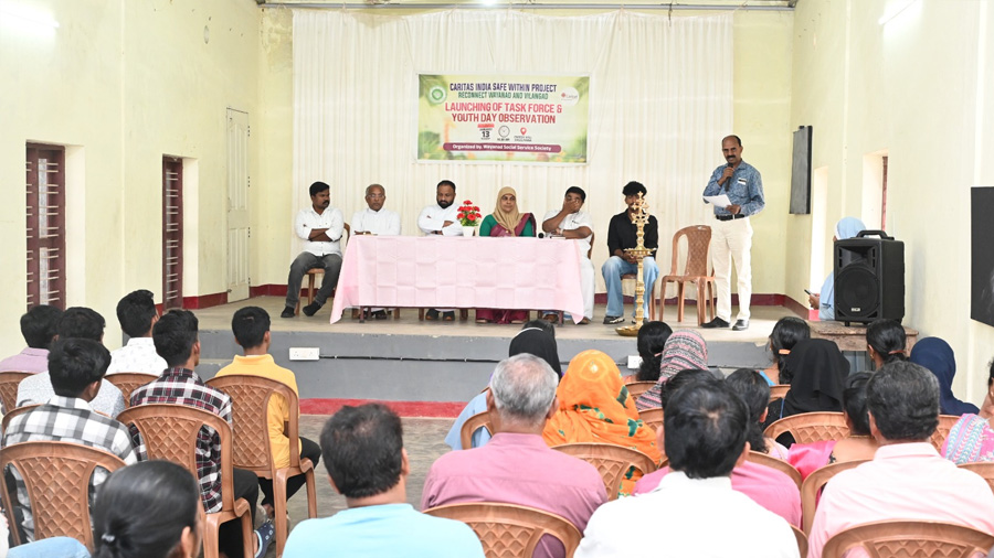 On 13 January 2026, this vision took a concrete step forward at Chulliyana Parish Hall, Cheriyamkolly, where Wayanad Social Service Society (WSSS) inaugurated a community Task Force and observed Youth Day under the Safe Within Reconnect Wayanad and Vilangad project. The programme brought together young people, local leaders, volunteers, and project staff to formally launch trained local teams that will support mental well-being, early warning dissemination, basic first aid, and camp management during crises.